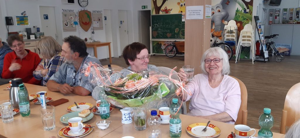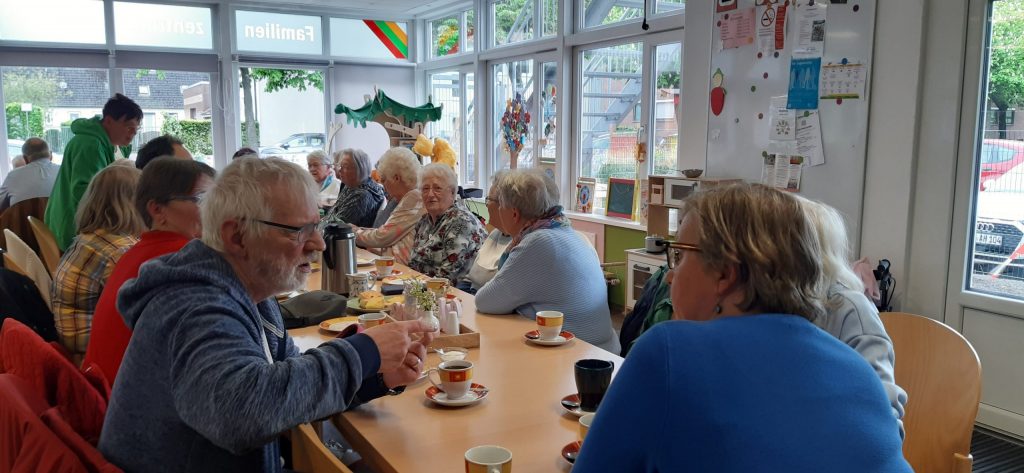 Volles Haus in der Klönstuv im Familienzentrum Nord– und das im besten Sinne! Heute war richtig was los: Erika hatte Geburtstag und sich bei Barbara ganz offiziell Kuchen für diesen besonderen Nachmittag „bestellt“. Und was soll man sagen? Barbara hat ihren Backofen zum Glühen gebracht und uns mit Erdbeertorte, Blech-Käsekuchen und saftigem Zitronenkuchen verwöhnt. Ein echter Genuss!