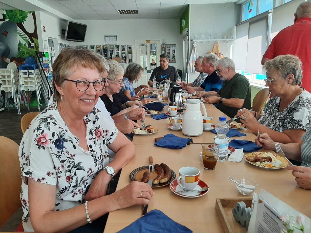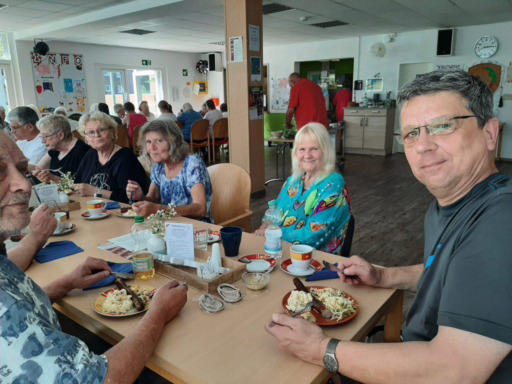 Auf dem Teller: Bratwürste frisch vom Grill, dazu hausgemachter Kartoffelsalat, Partysalat und Porreesalat – alles liebevoll vorbereitet von Günni, Babsi und Marion. Unser Grillmeister Günni hat die Würstchen perfekt gegrillt 🔥 und Barbara Cornelsen hat uns wieder tatkräftig unterstützt – danke für deinen Einsatz! 🙌