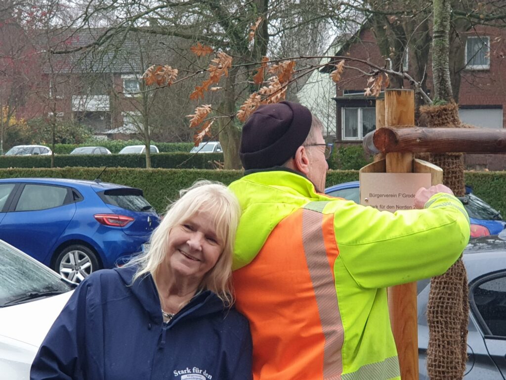 Trotz des eher ungemütlichen Wetters ließen sich Marion Reiners, Günther Cordes und Barbara Cordes vom Bürgerverein, die gute Laune nicht verderben. Gemeinsam freuten sie sich darüber, dass die Patenschaften jetzt auch offiziell sichtbar sind und zeigen, wie viel Herz in Fedderwardergroden steckt.