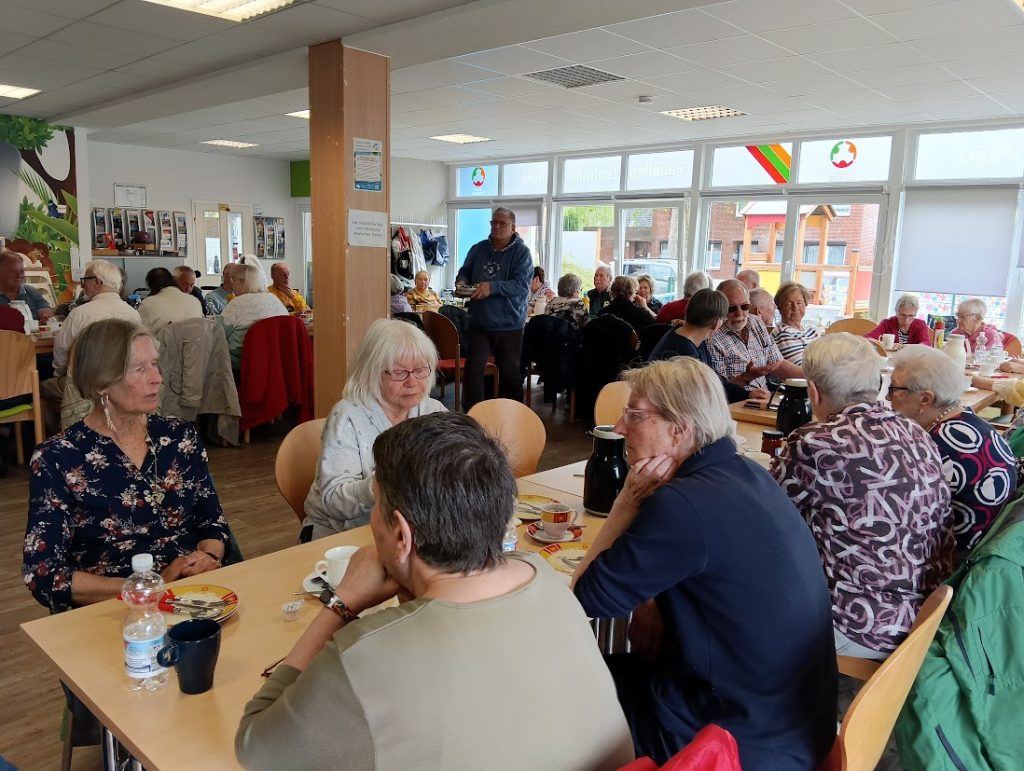 Die heutige Klönstuv war wieder einmal bestens besucht – bis auf den letzten Platz war alles belegt. Kein Wunder, denn wer einmal dabei war, weiß: Hier trifft man nette Leute, gute Laune und immer etwas zu erzählen.