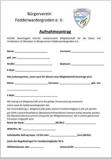 • Aufnahmeantrag